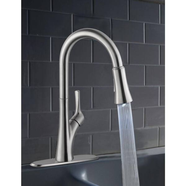 Glacier Bay Single Handle Pull Down Sprayer Kitchen Faucet With Led Light In Stainless Steel 67646 0008d2 The Home Depot